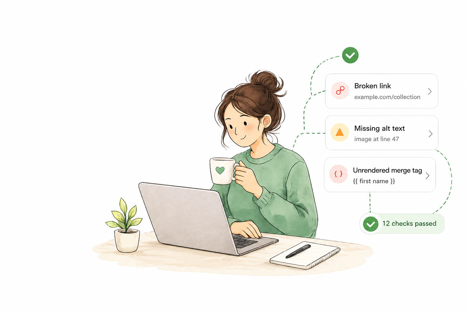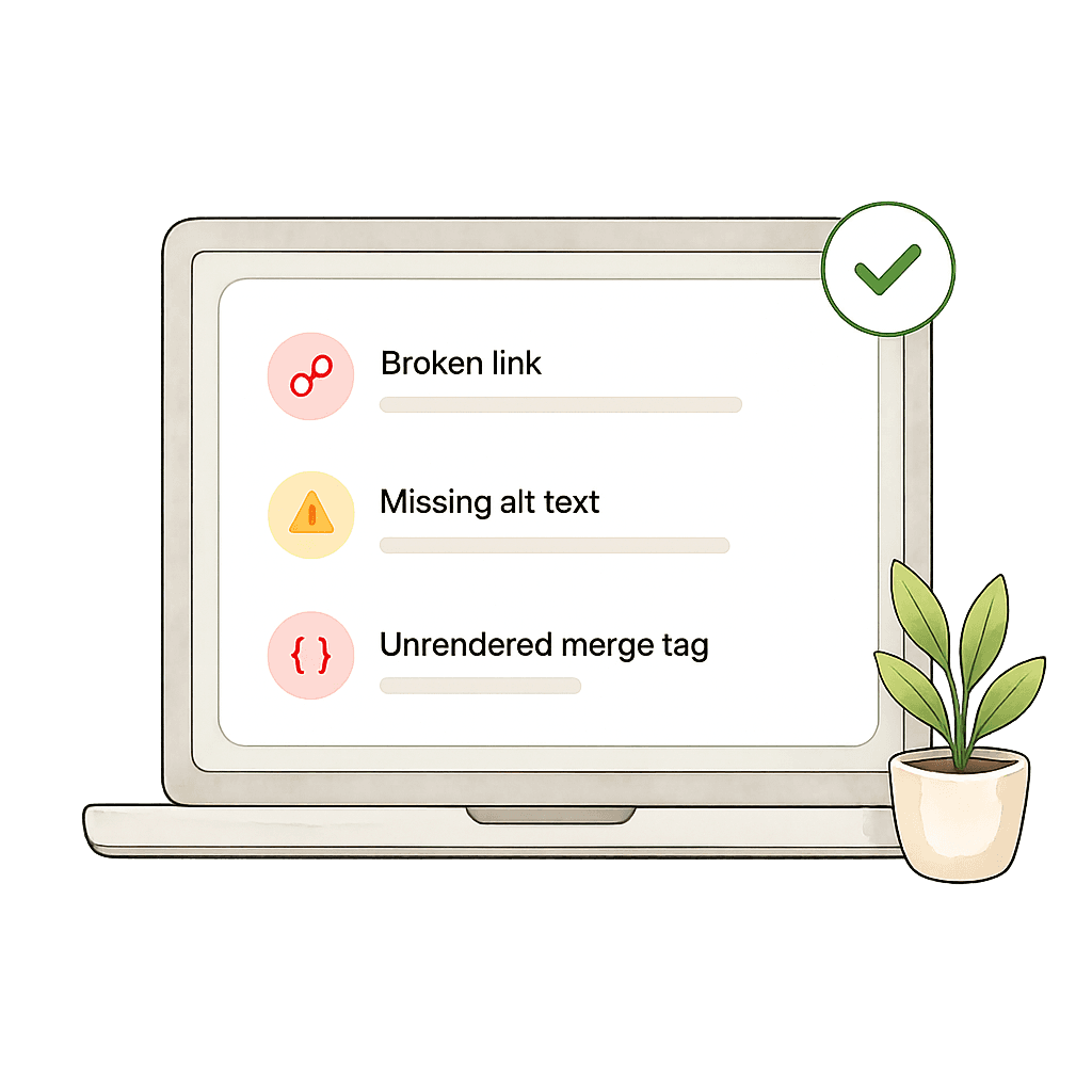 You hit send. Then you realize the link points to staging. Or the merge tag never rendered and 50,000 people just got “Hi {{first_name}}”. Klaviyo doesn’t catch these. Test sends to your coworker don’t either.